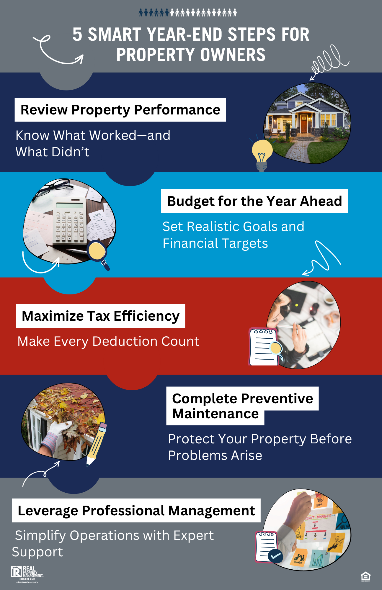 As the year draws to a close, property owners and real estate investors have a valuable opportunity to evaluate performance, make improvements, and set a clear strategy for the year ahead. The final months of the year are a natural checkpoint—an ideal time to review your financials, maintenance schedules, and management processes to ensure your investments are positioned for long-term success.